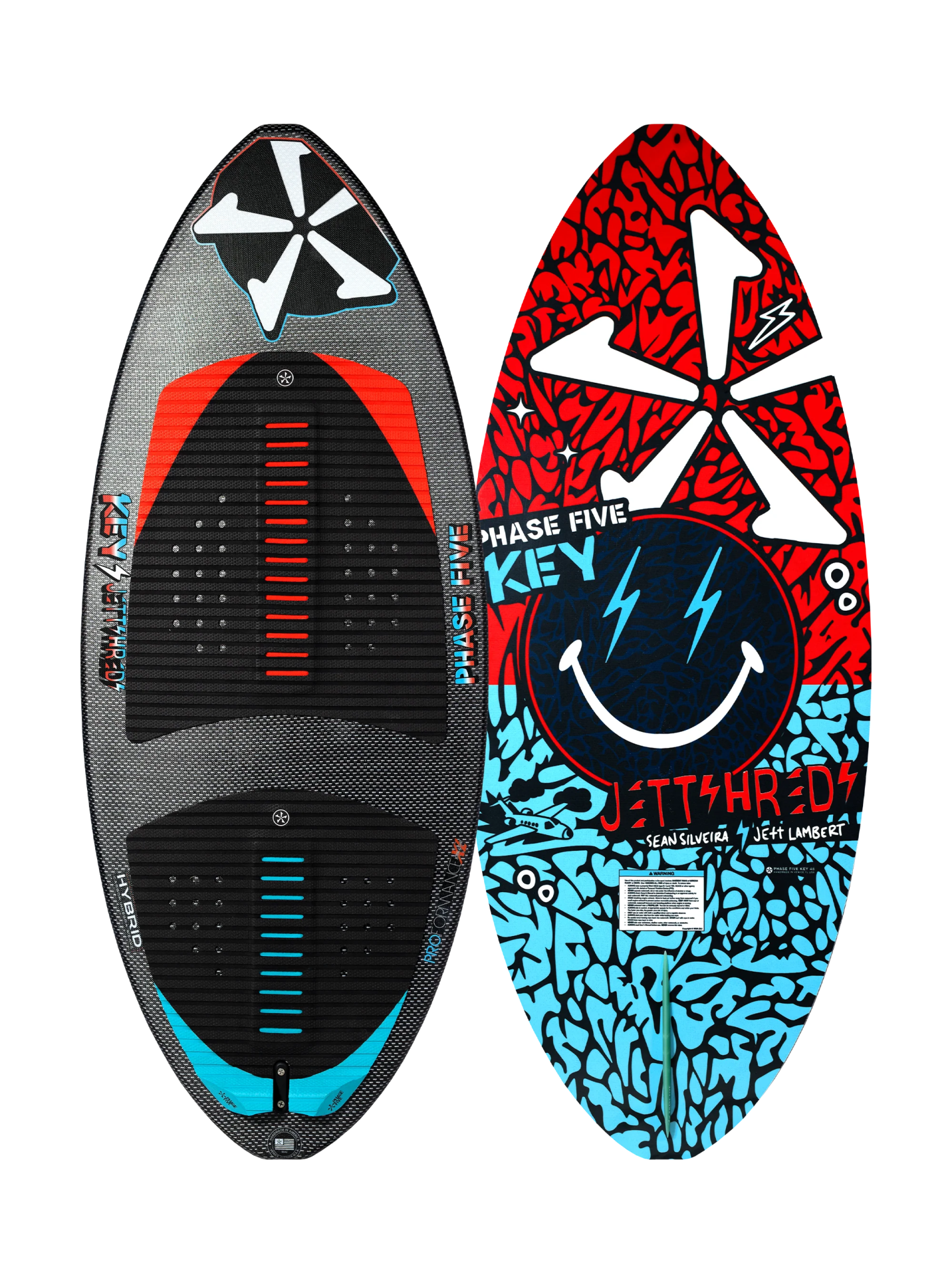 The Phase Five Key Jett Shreds Wakesurfer is a Jett Lambert & Sean Silveira inspired board. You will find this board on the top of many podiums! The nose and tail are a squared off nub shape design. The Jett Shreds Key rotates quickly and carries tons of speed through trick combinations, thanks to the thin poppy core and subtle V-Spline bottom contours. The Key Jett Shreds is constructed with Hybrid Carbon™ material to take a beating. It is built with a single fin setup and loaded with our 1” Skim Fin. It is the KEY for advanced riding!