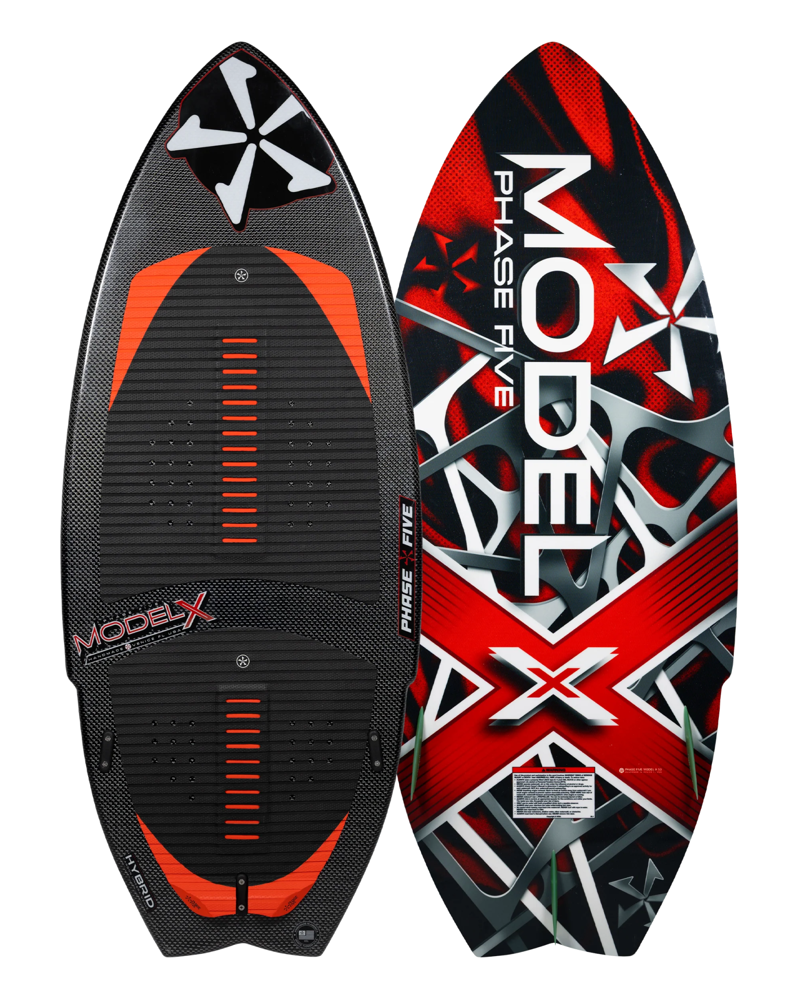 For over a decade the Model X has delivered unwavering performance and dependability for a wide range of riders. The Phase Five Model X Wakesurfer is easy to ride while still delivering high-end performance. Its full outline with a gradual entry rocker flows nicely into the Model X’s unique single wing swallow tail. These design features make the Model X very stable, fast and maneuverable. The versatile Model X is ready to cruise in the pocket or cut loose above the lip, making it a solid choice for most riders. The Model X is constructed with our GatorSkin™ glass and three fin setup loaded with 2” Skim Fins for maximum control.