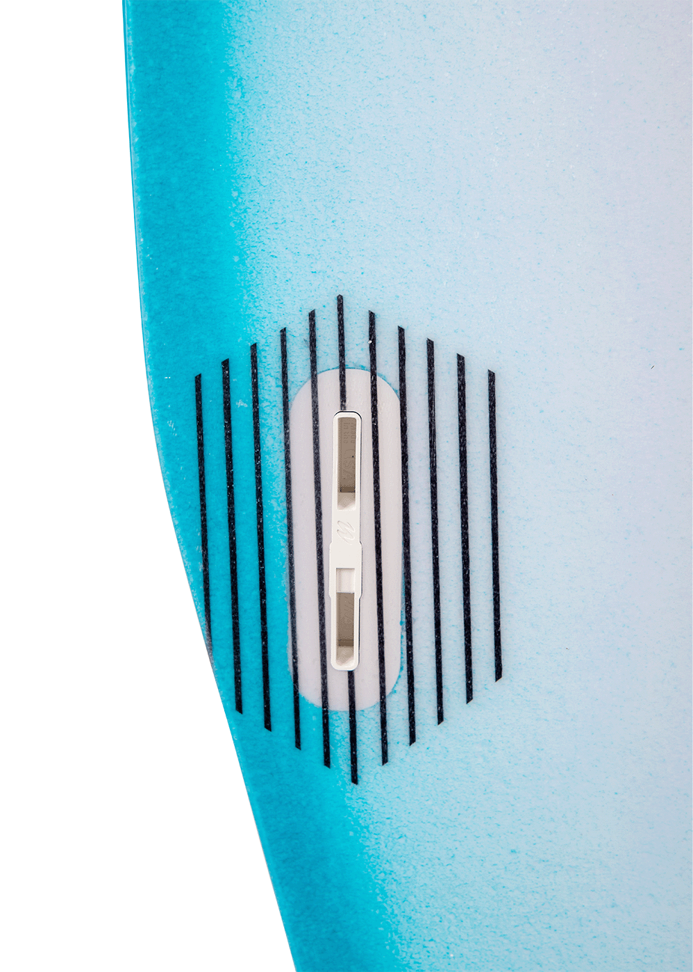 Fishhook Tail: A wider, squared off tail to maximize glide speed before the turn. Two pivot points allow the board to roll on edge.