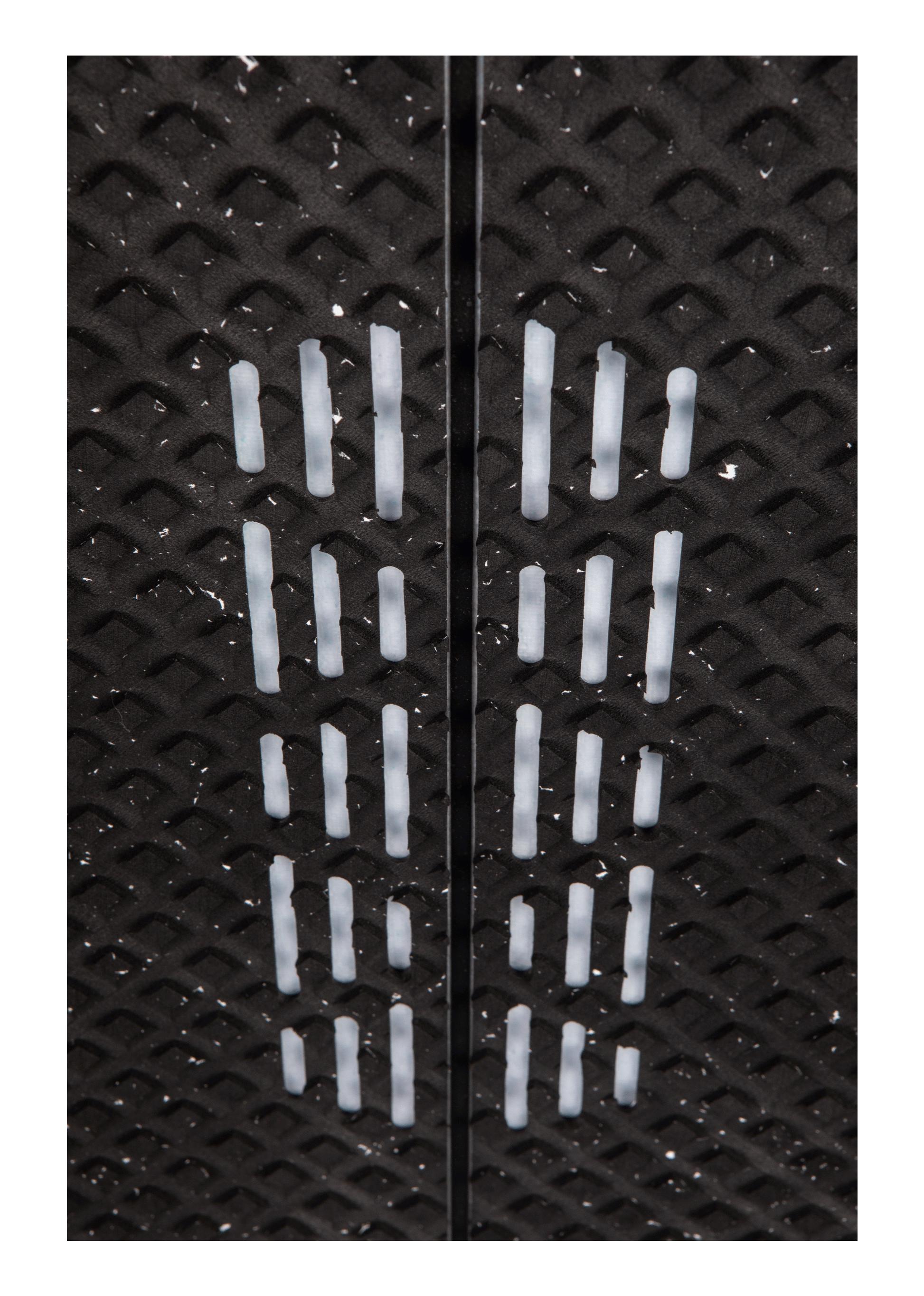 USA S-Glass: A new Flyweight Pro fiberglass that features a more reactive weave. This results in a lively feel with added pop. Carbon patches target stiffness around the fin box adding power to bottom turns.
